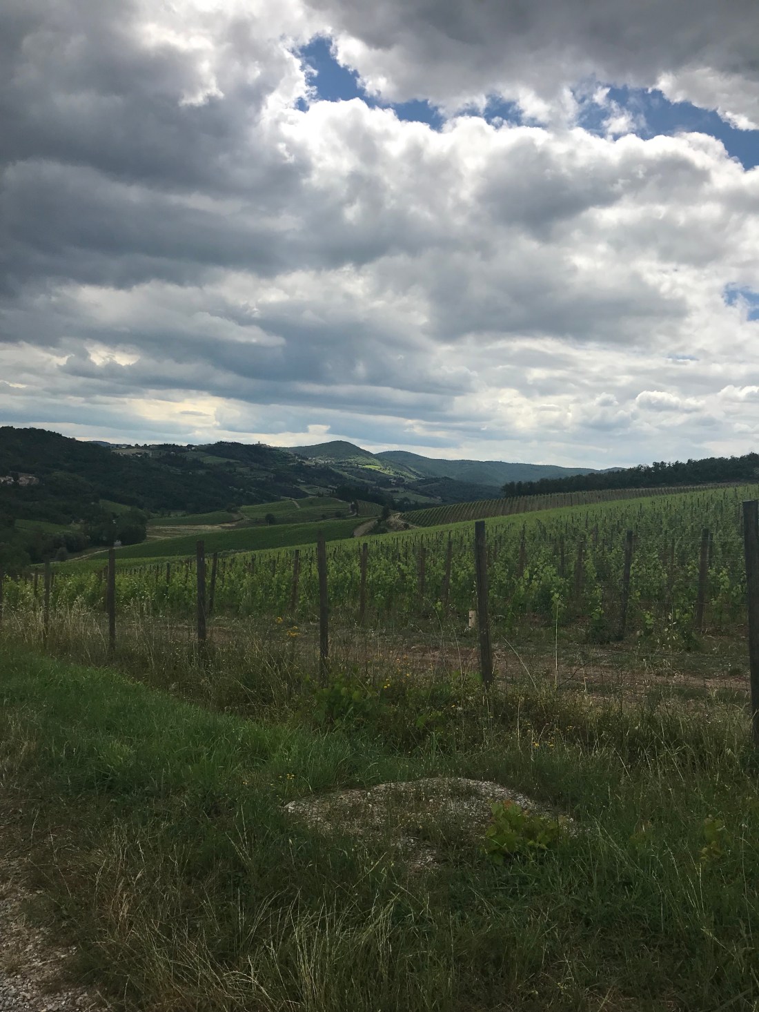 Then after pudding of gelato – I had a caramel one that tasted just like Joe’s – and Andy having a fat boy portion that resulted in a visible brain freeze 😖, we drove through the hilly countryside to the chosen vineyard. It was beautiful and round every turn were lines of vines and olive trees. There were a lot of steep hills and switch backs and I was very glad we were in the van!